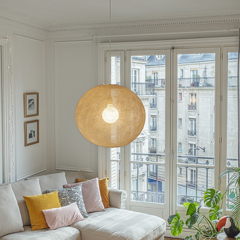 Matières : coton et sisal Dimensions : Diamètre 17cm Hauteur : 22 cm Longueur du câble: 150 cm