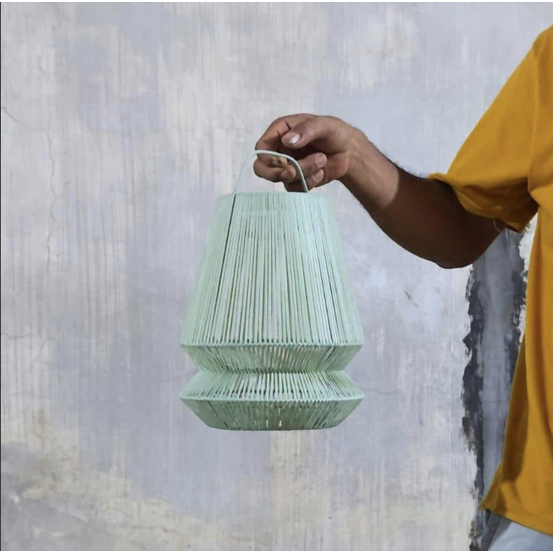 Matières : coton et sisal Dimensions : Diamètre 17cm Hauteur : 22 cm Longueur du câble: 150 cm