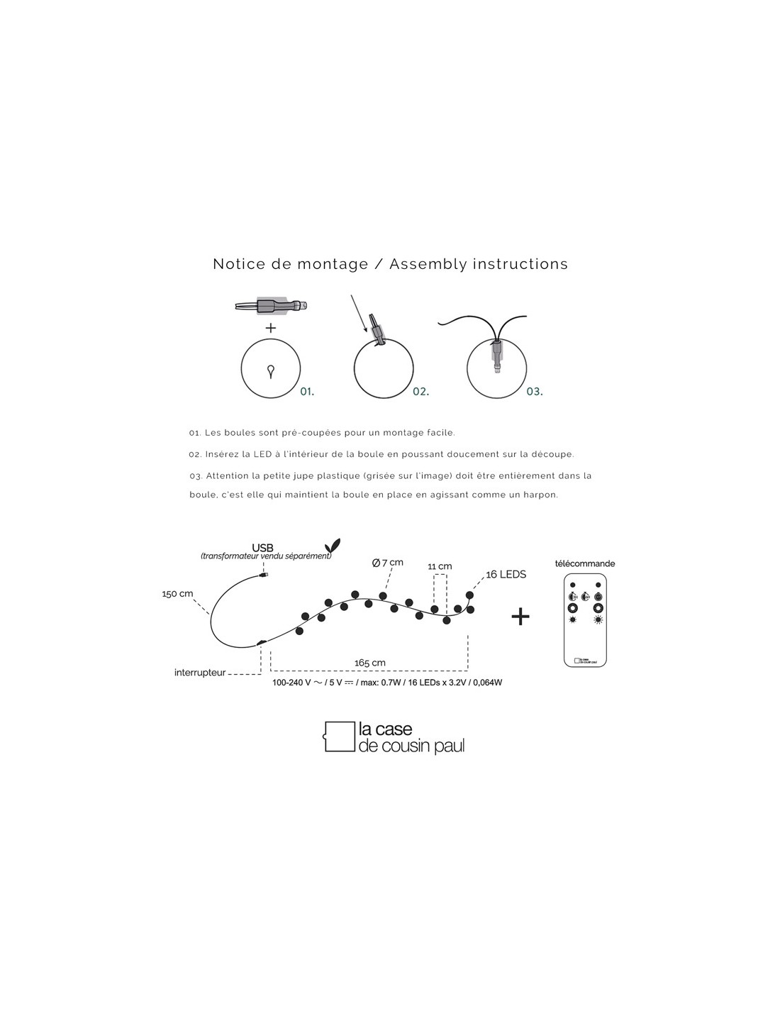 EN MODE ECO : Aujourd’hui nous avons de nombreux transformateurs compatibles USB dans nos maisons (pour nos téléphones mobiles, enceintes, accessoires divers) alors nous avons choisi de ne pas fournir un accessoire que vous avez déjà.