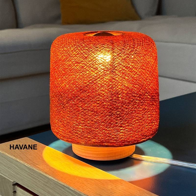 Hauteur totale : 21cm Abat-jour : Ø 21cm Abat-jour tissé à la main, base en hêtre brut fabriquée en France, câble transparent 1m50, prise CE, interrupteur Douille CE E27 ampoule max 60w non fournie Design Florian GAUTEUR
