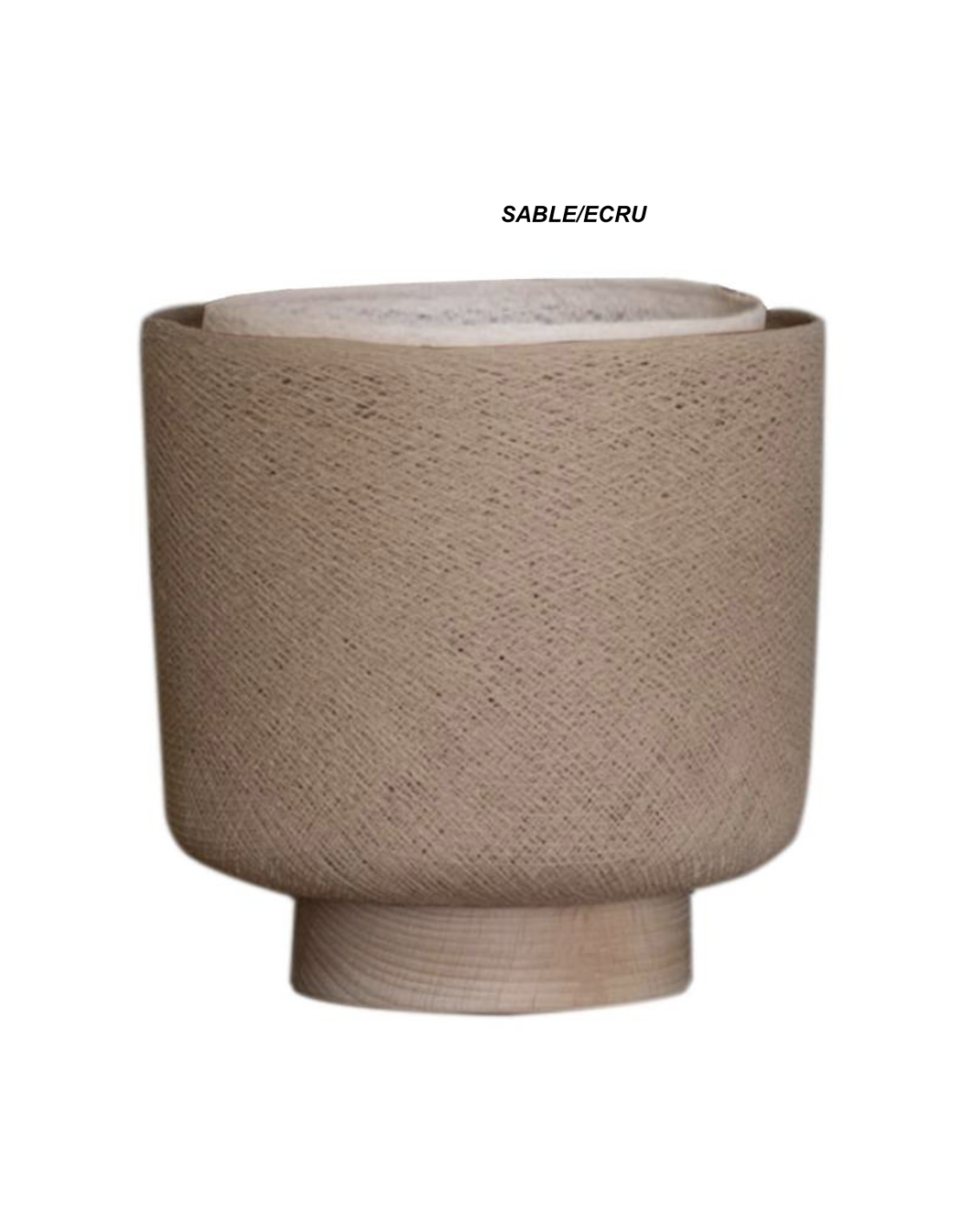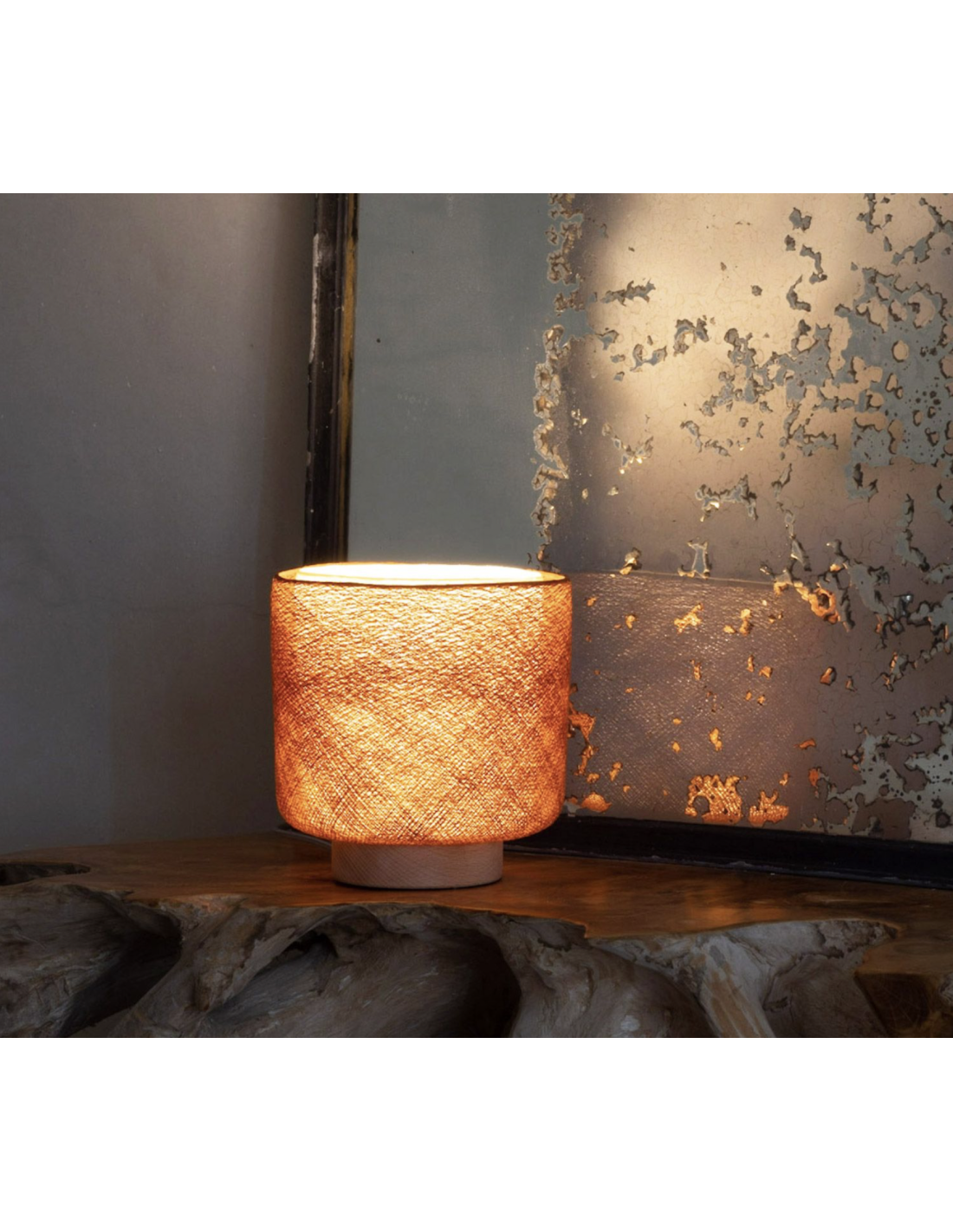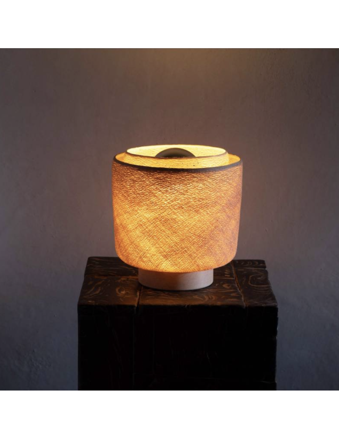 Abat-jour tissé à la main, base en hêtre brut fabriquée en France, câble transparent 1m50, prise CE, interrupteur