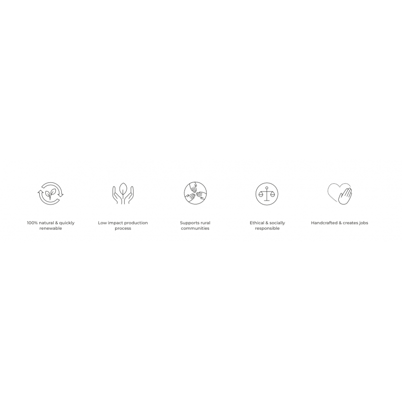 Tous les produits sont fabriqués à la main à partir de matériaux 100 % naturels et écologiques.