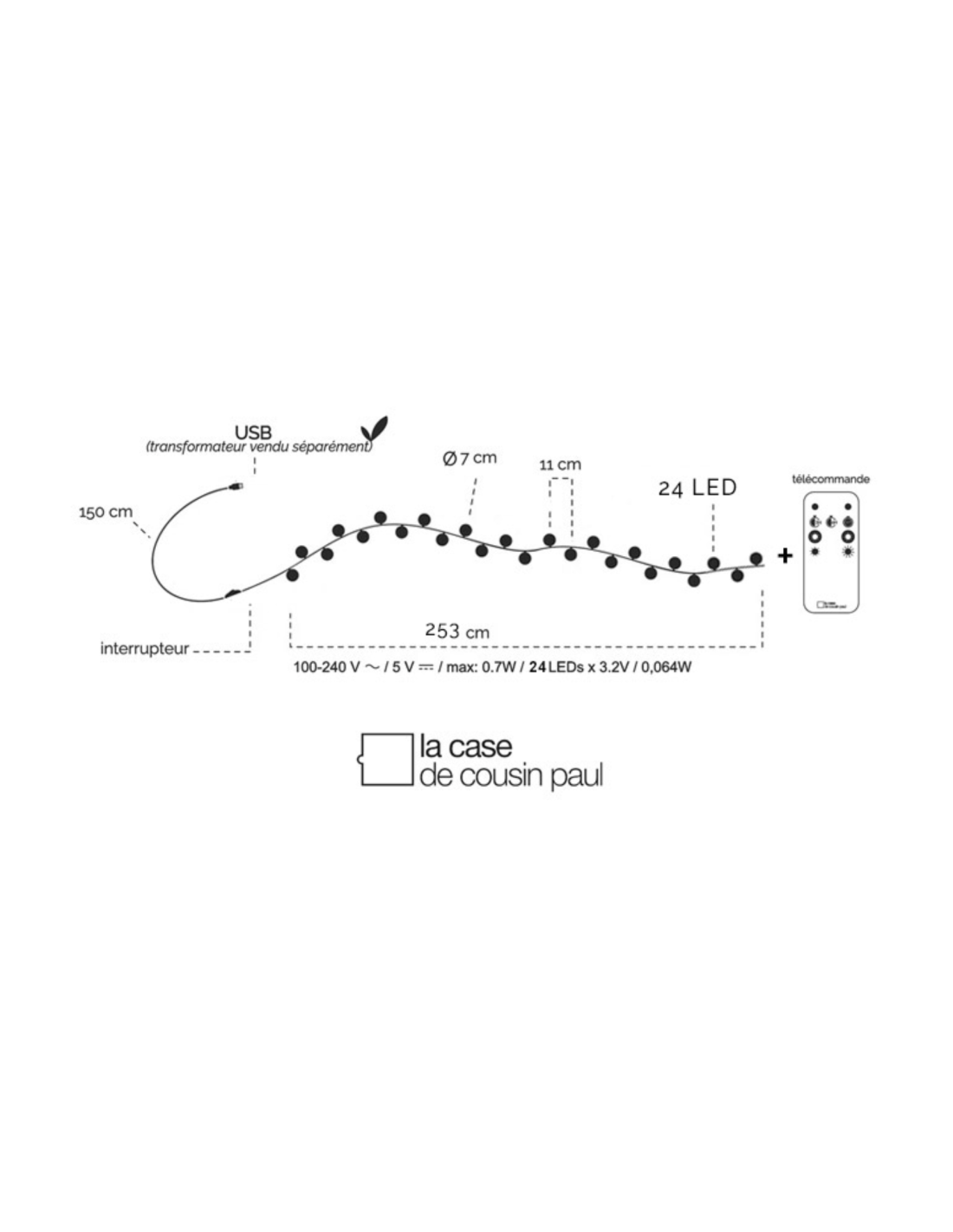 port USB (transformateur vendu séparément) TRANSFORMATEUR POUR GUIRLANDE