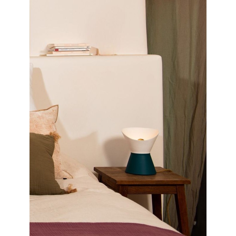 Dimensions du produit : D15xH27,5 cm Composition : grès, Lin, métal Taille de l’ampoule : E14 Longueur de cordon : 150 cm