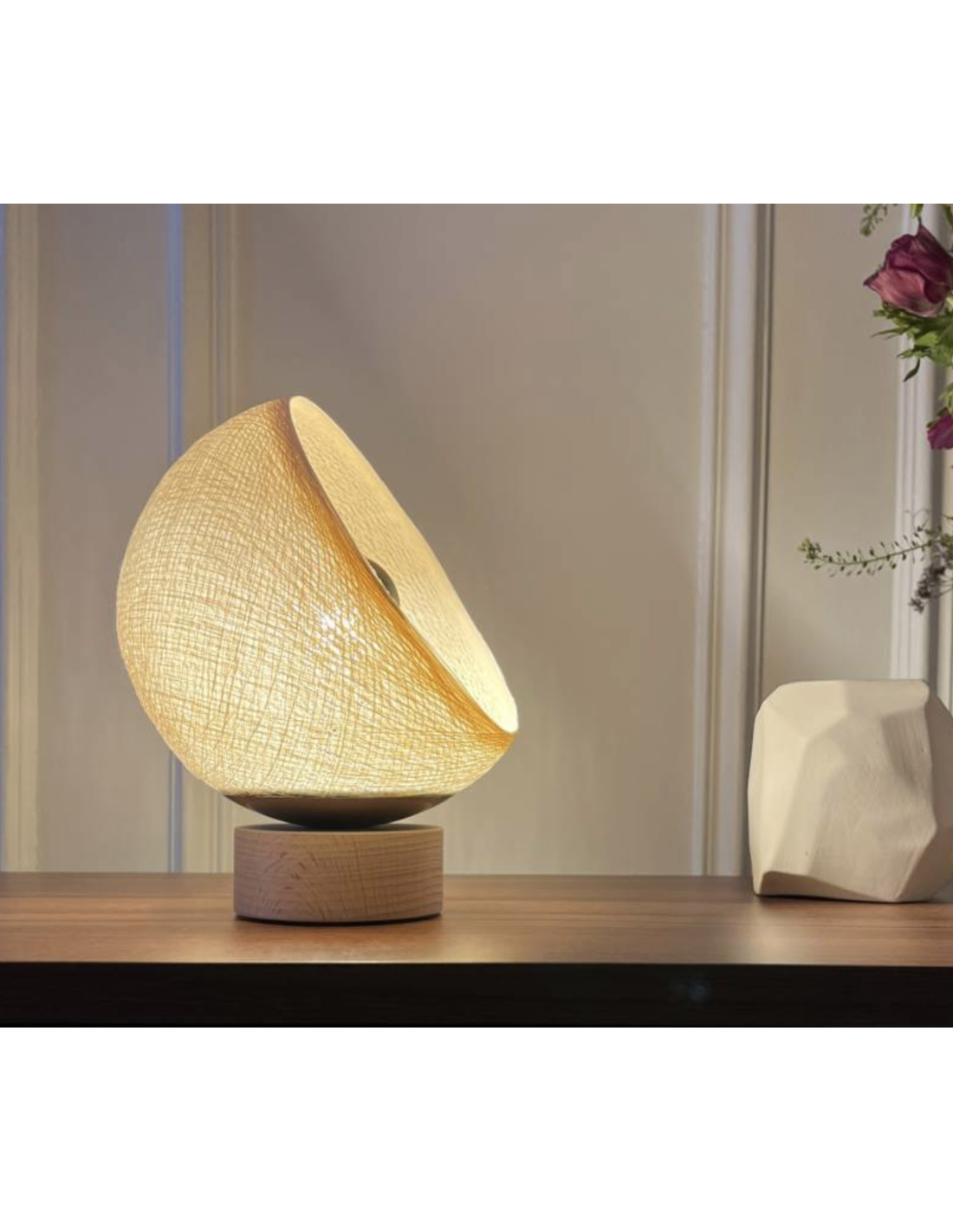 Son pied en bois de hêtre, fabriqué en Bretagne, apporte une touche de naturel et de sophistication à son design. Associé à son abat-jour Bebop tissé à la main avec passion, il en résulte une lampe raffinée et polyvalente. Sa taille compacte en fait un choix idéal pour une table de chevet, un bureau ou même pour sublimer un petit espace dans votre salon.