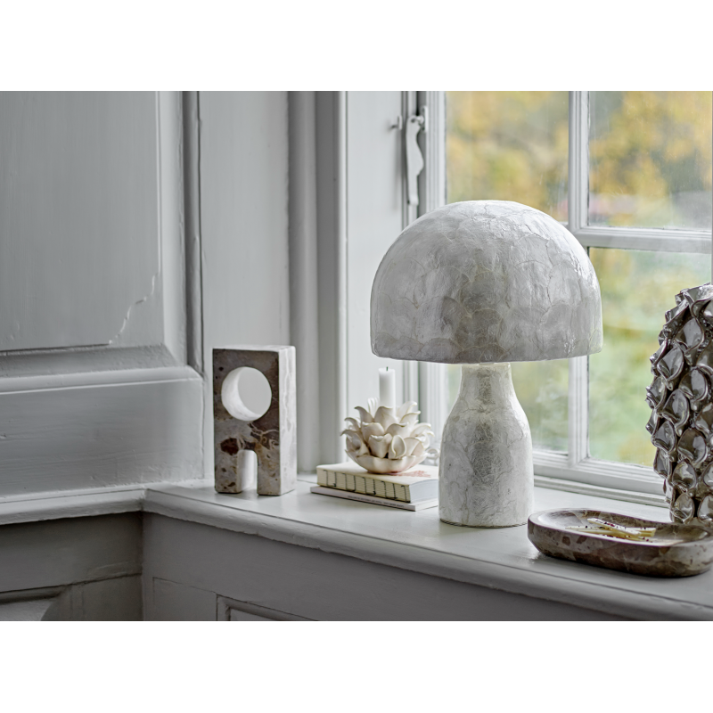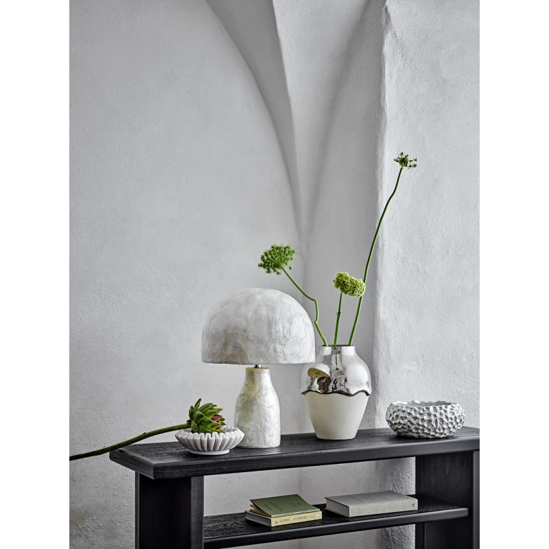 Dimensions du produit : D15xH27,5 cm Composition : grès, Lin, métal Taille de l’ampoule : E14 Longueur de cordon : 150 cm