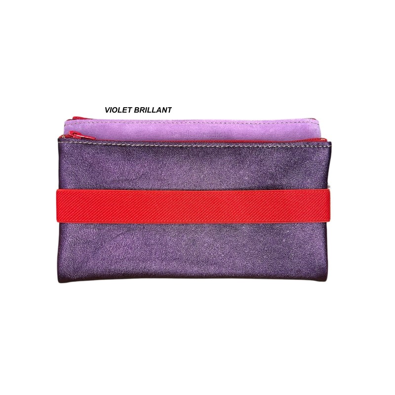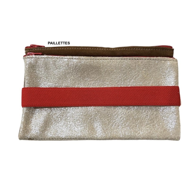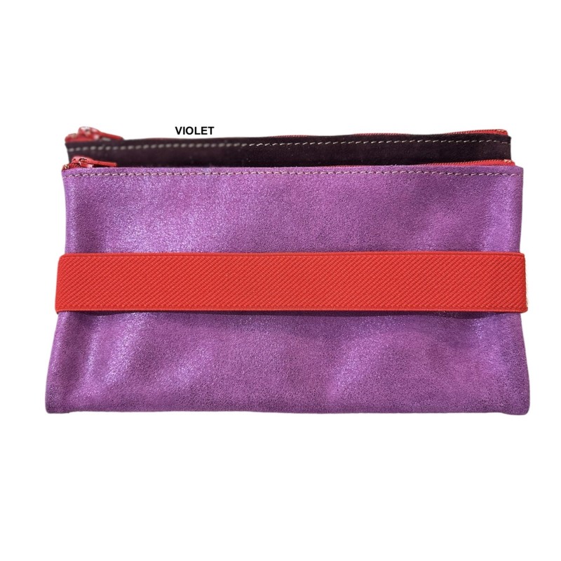 Pochette en cuir de vachette à reflets irisés. Made in Italy Dimensions : 20x14 cm