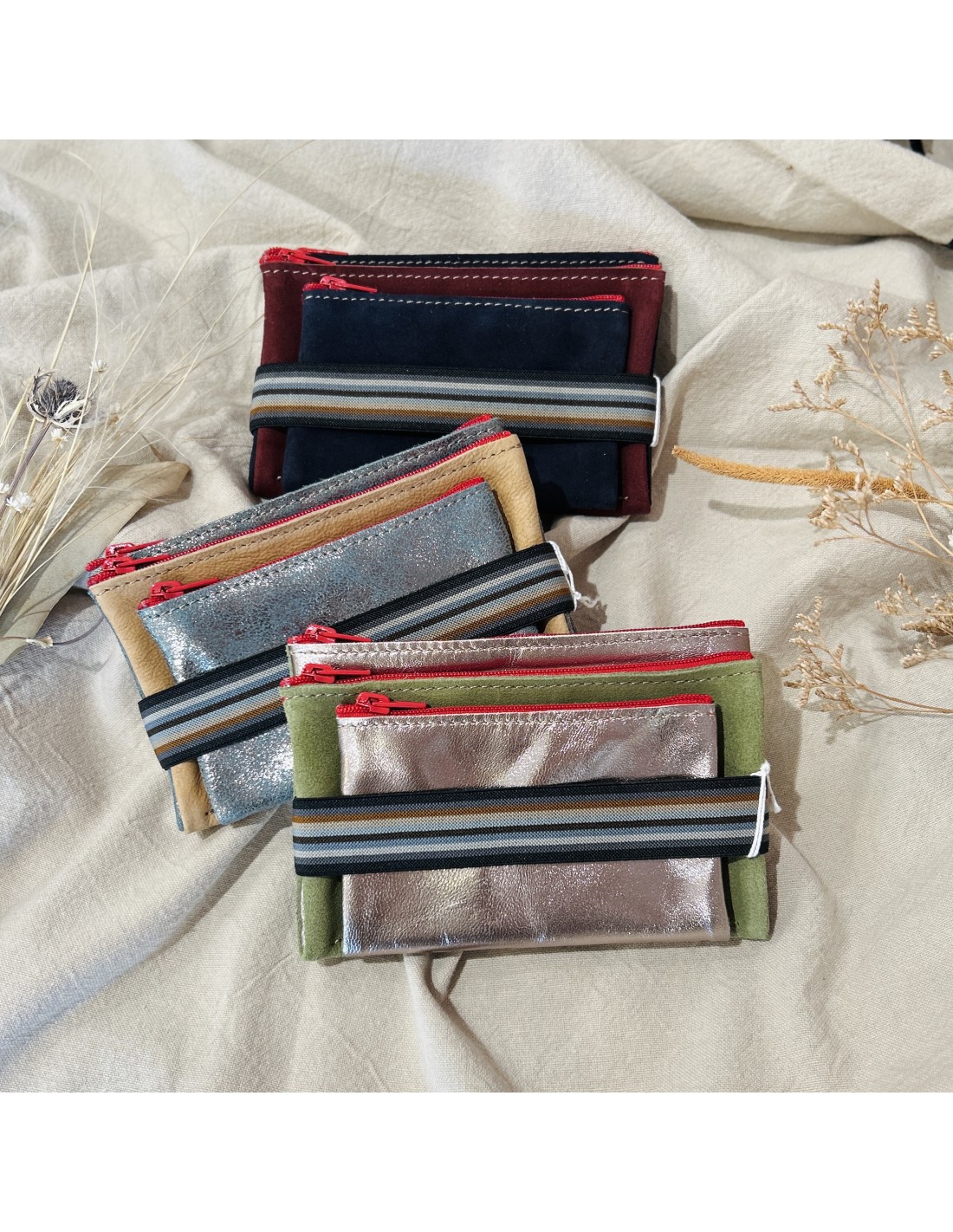 Les cuirs sont rigoureusement sélectionnés auprès d'ateliers de maroquinerie, chaussures,tanneurs et trouvent une deuxième vie.., toutes les pièces sont créées et fabriquées en France, dans un esprit "collection renouvelée" au fil de leurs trouvailles.