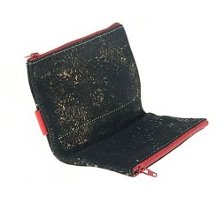 Dimensions : Dimensions : H8,5 x L11cm Matière : Cuir de vachette irisé Une poche avec zip + deux autres poches avec séparateur à l’intérieur.