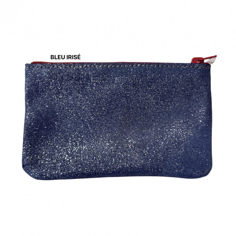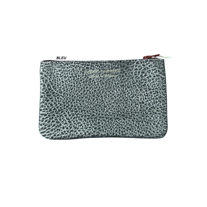 Pochette en cuir de vachette à reflets irisés. Made in Italy Dimensions : 20x14 cm