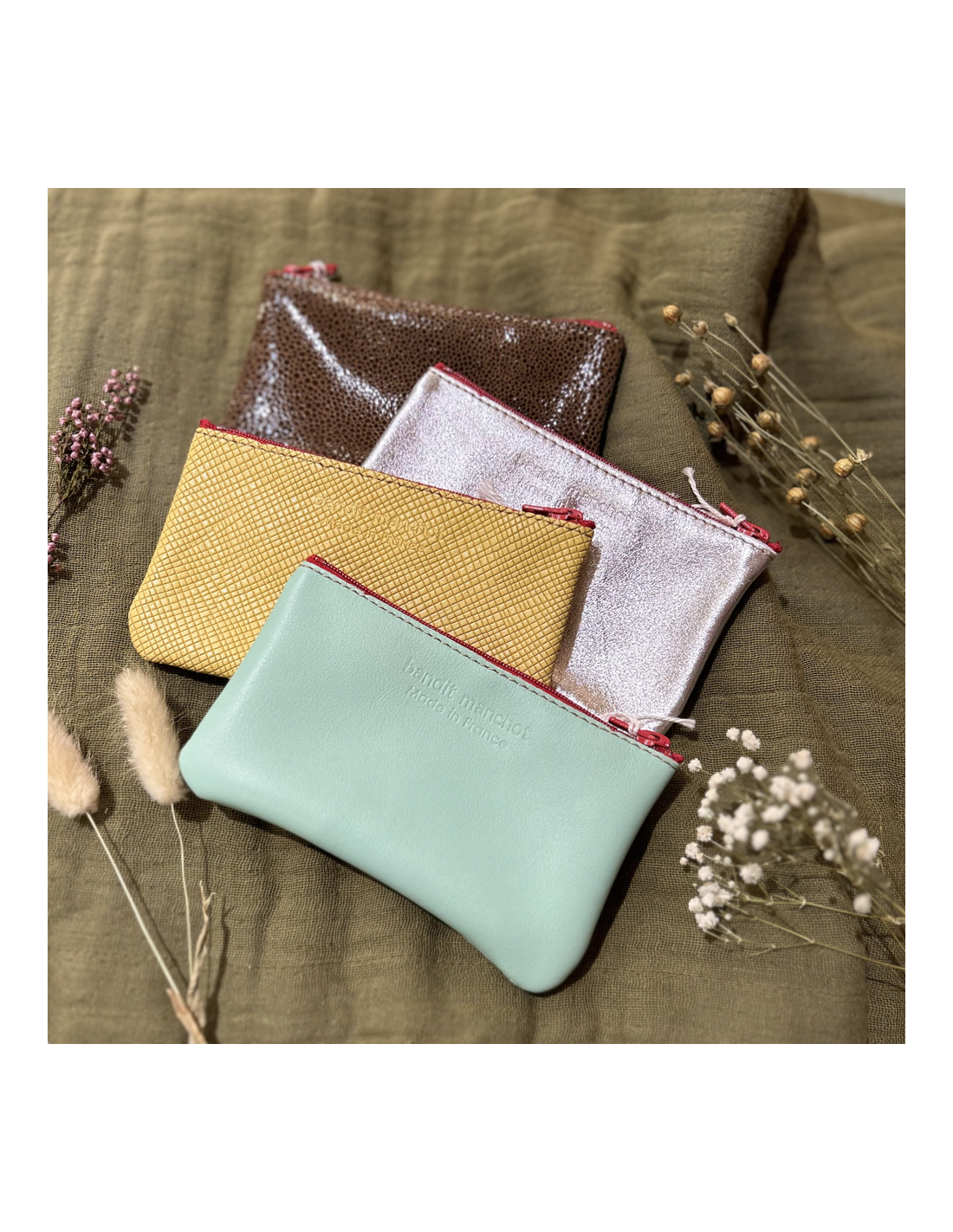 Trousse en cuir fermée par un zip rouge par la marque française BANDIT MANCHOT.