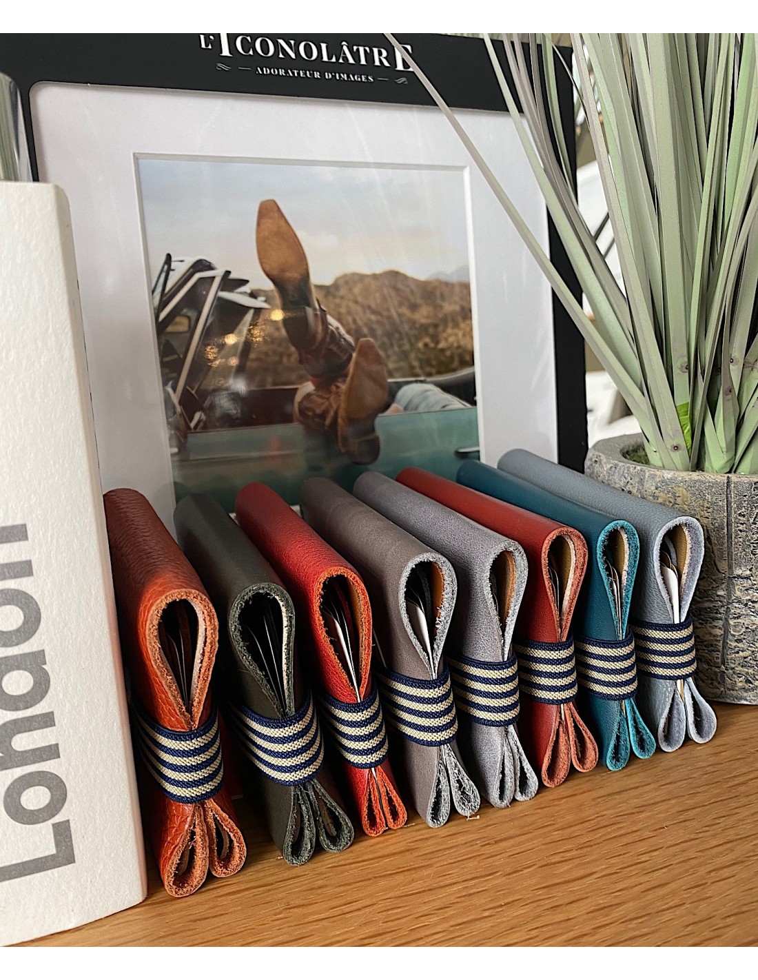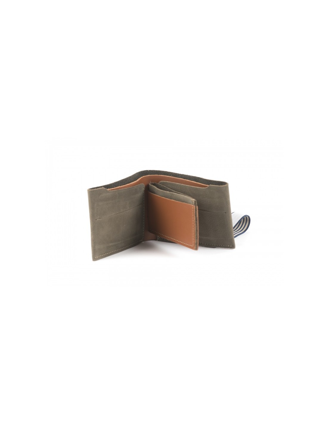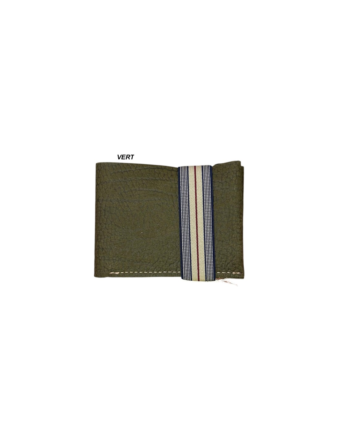 Portefeuille pour homme en cuir upcyclé avec porte cartes central et fermeture élastiquée, de chez BANDIT MANCHOT.