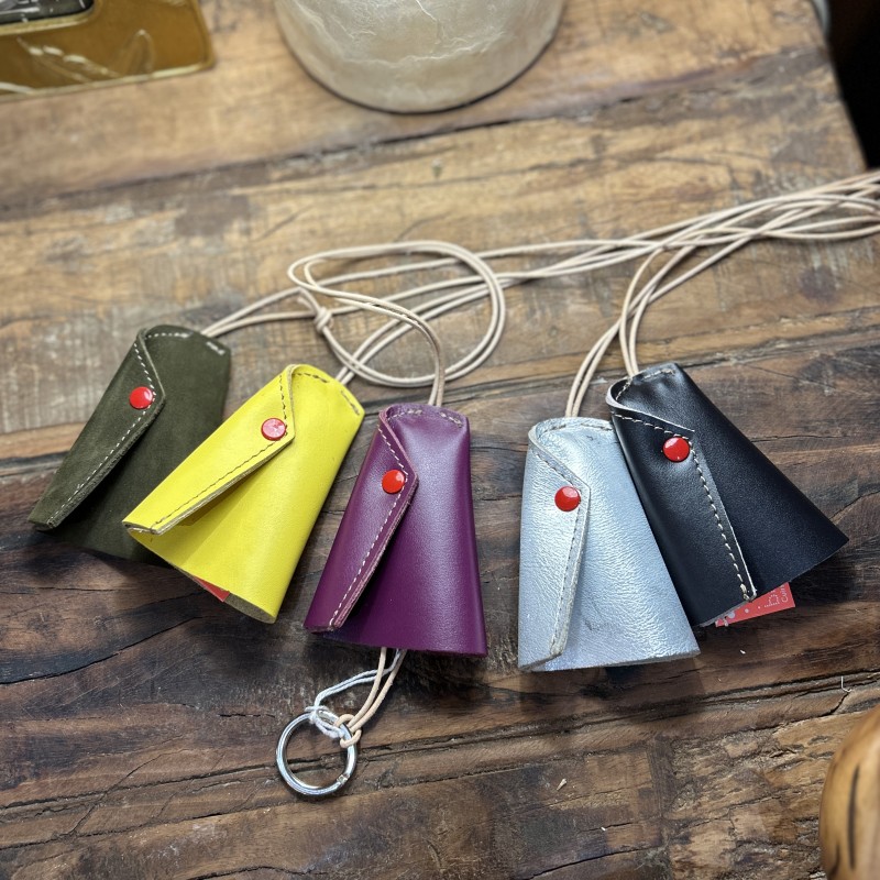 Dimensions : hauteur 10 cm x largeur 16,5 cm Matière : cuir ressourcé Fabriquée à la main dans le Tarn