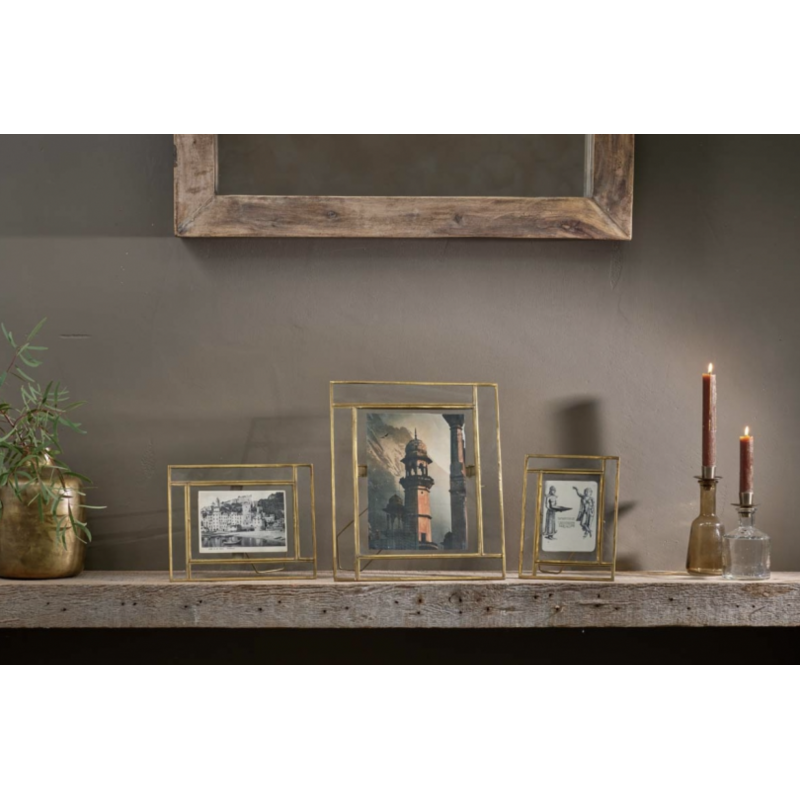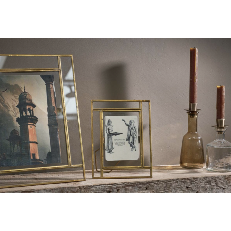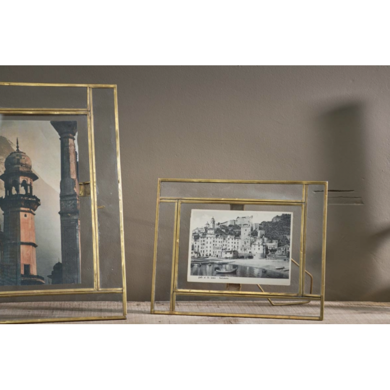 Dimensions : Cadre: 13 x 16 x 4.5 cm Photo: 10 x 7 cm Matière : Laiton recyclé, Verre coloré