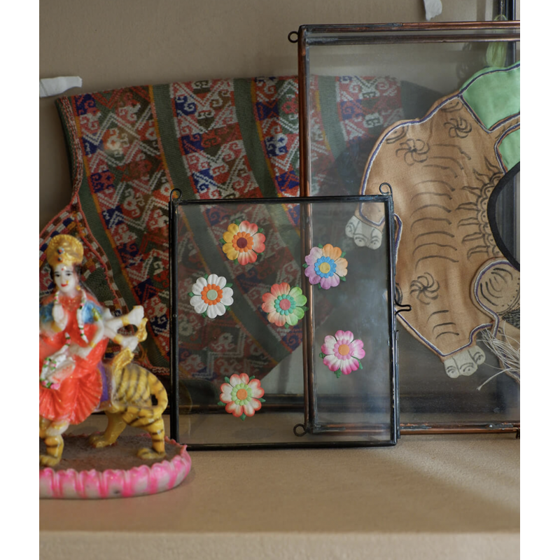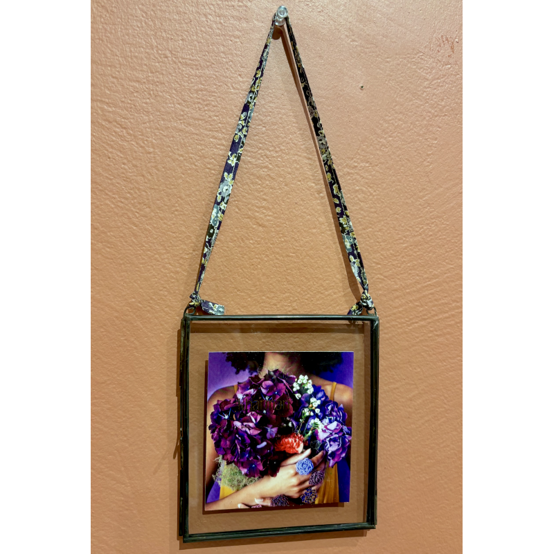 Dimensions : Cadre: 13 x 16 x 4.5 cm Photo: 10 x 7 cm Matière : Laiton recyclé, Verre coloré