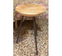 Matière : teck Dimensions : h45 x d30 cm Petite table d'appoint, bout de canapé ou support pour vos plantes avec un plateau en teck et 3 pieds en métal