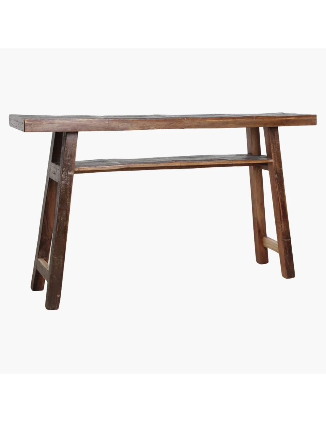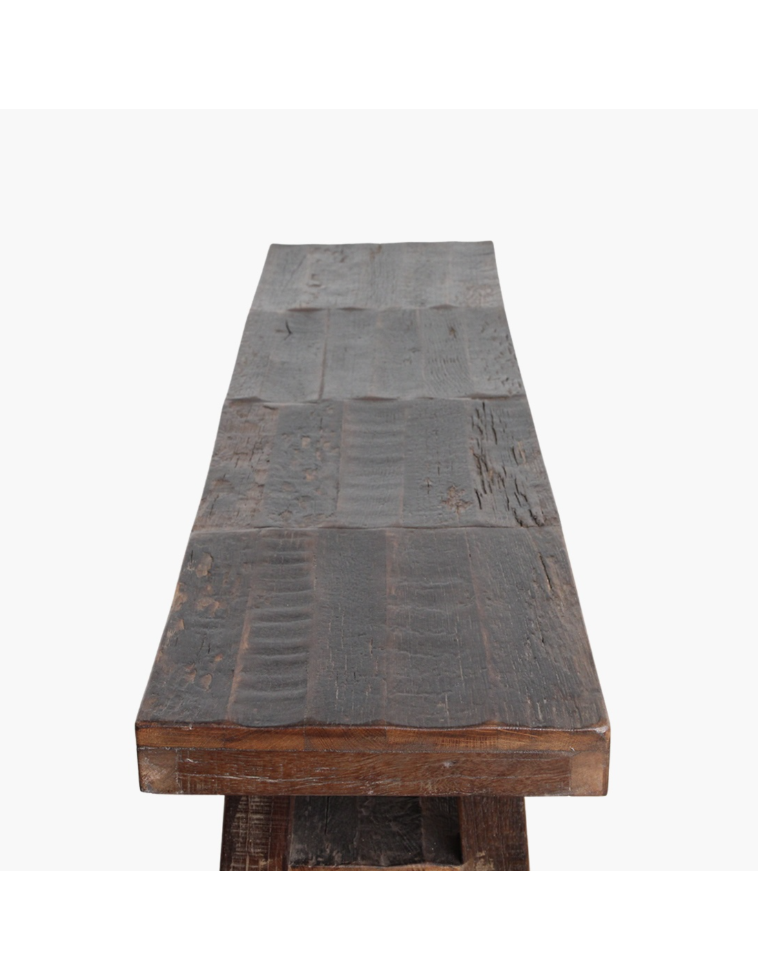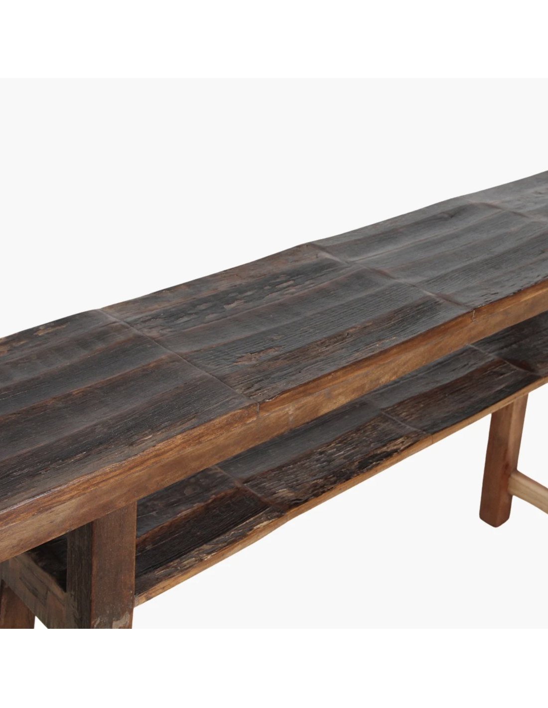 Fabriquée à partir de vieux tonneaux de bois, la console a un aspect vintage unique.