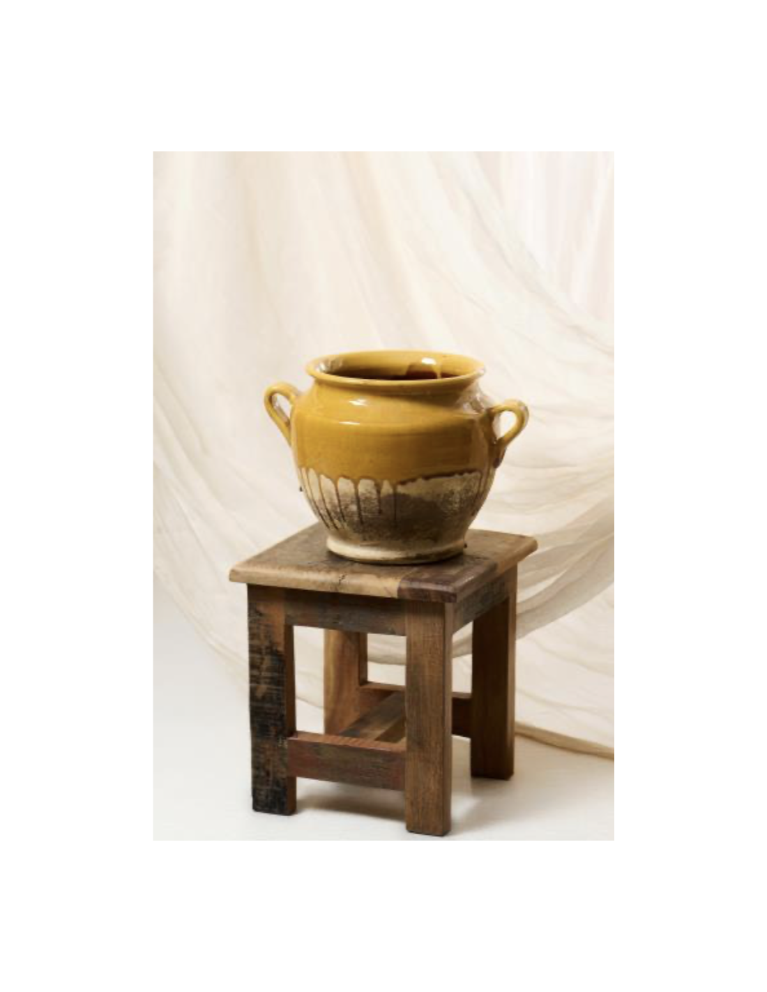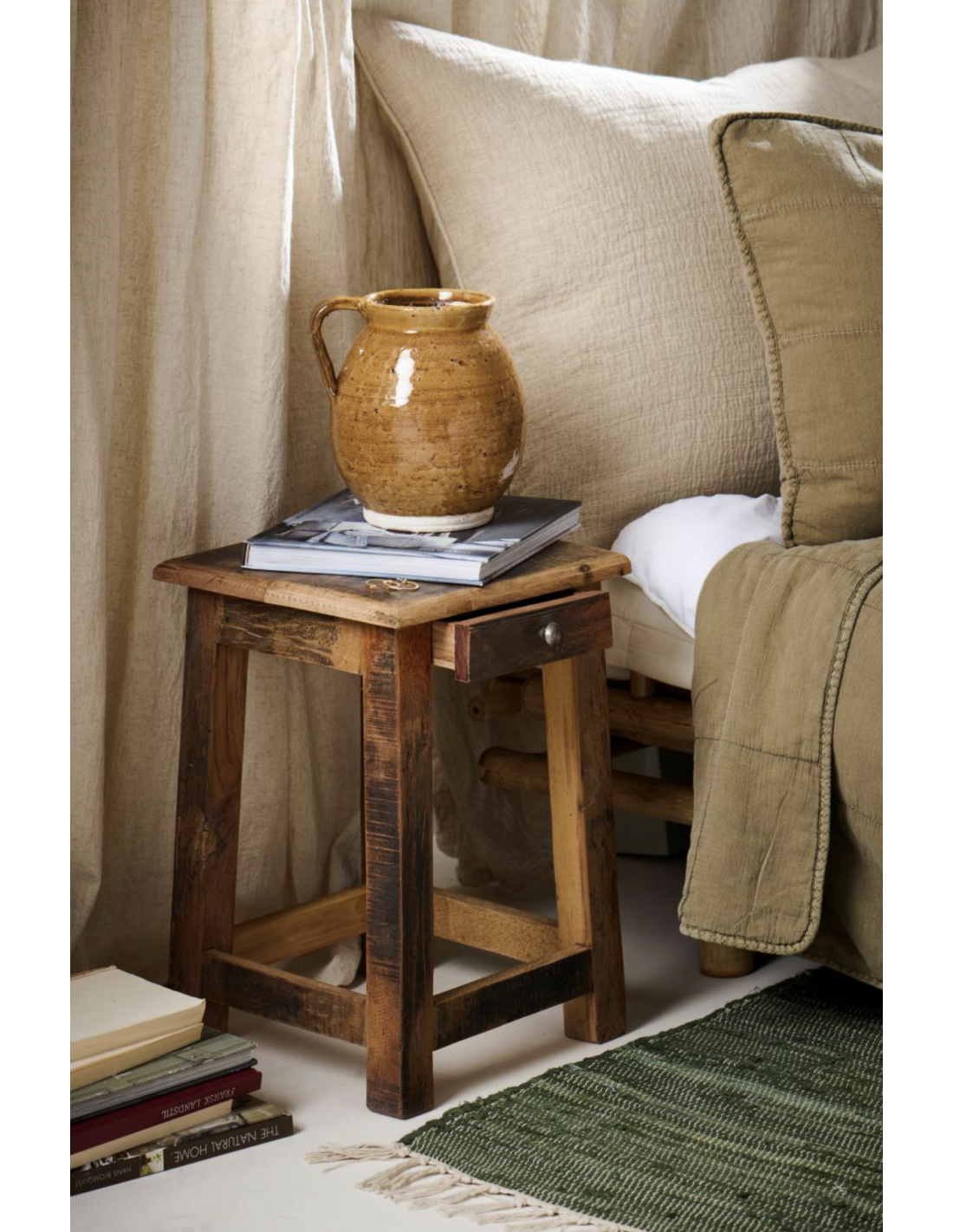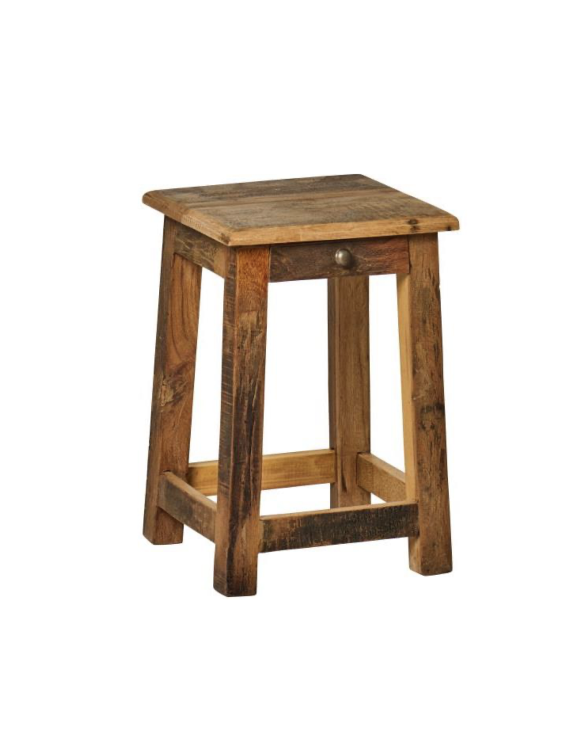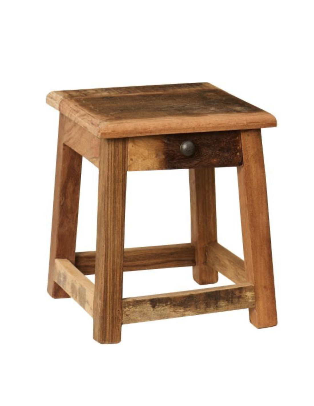 Petit tabouret fabriqué en Inde à partir de bois de démolition recyclé, ce qui lui confère un aspect unique et un charme naturel.