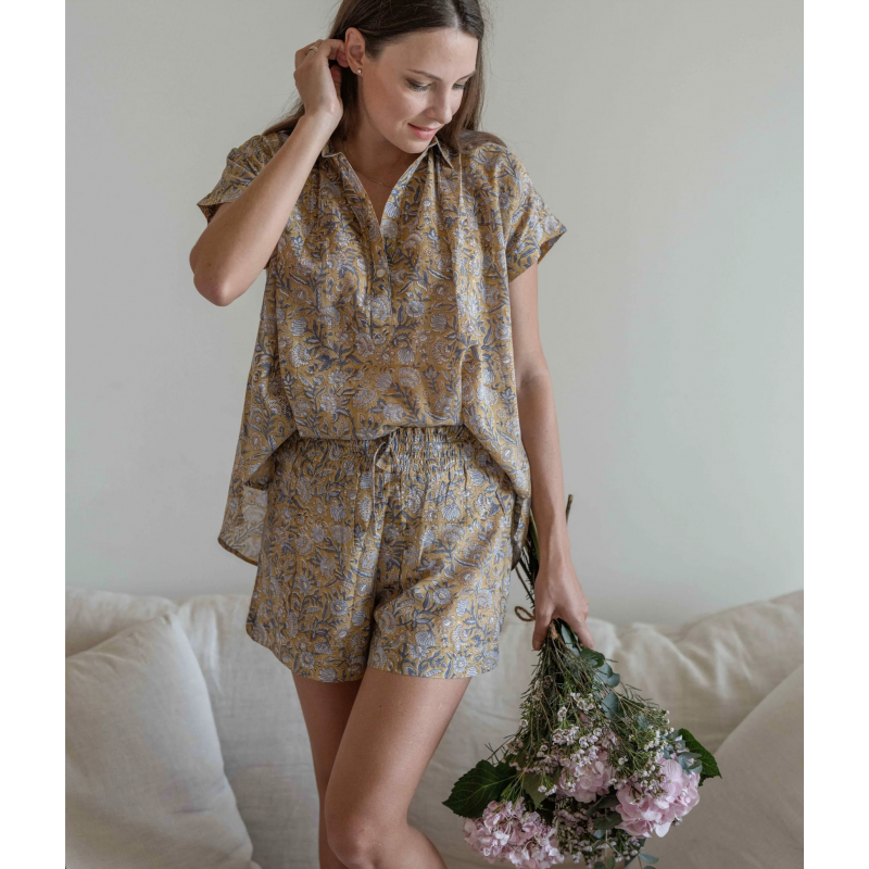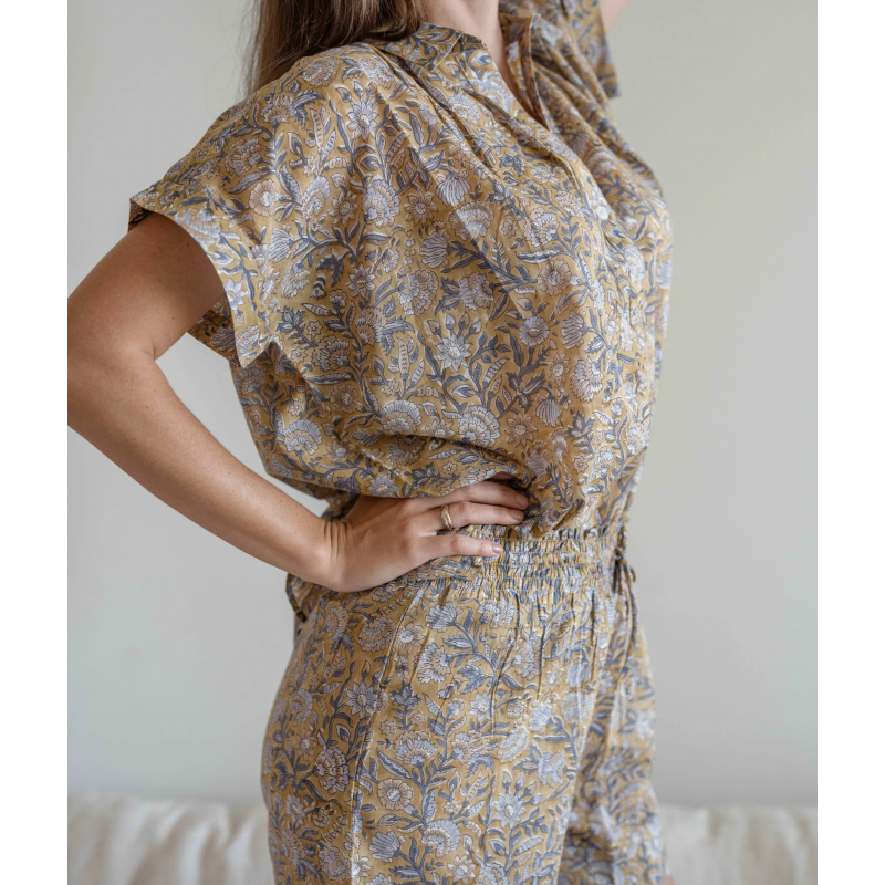 Cette Liberty est une jolie cotonnade avec ses traditionnels petits motifs floraux. Trop mignon ! La Pantoufle à Pépère est intégralement fabriquée en France en Charente Charentaise légère et remplie de pure laine.