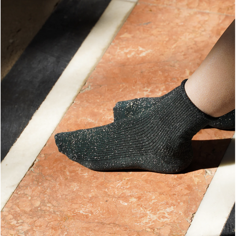 Chaussettes imaginées en France, fabriquées en Italie Délicatement ornée de pompons pailletés, la London Eyes Sauge apportera la touche de charme idéale à vos tenues. Son coloris doux et apaisant vous accompagnera tout le long du printemps. Raffinées et féminines, elles se portent aussi bien avec des escarpins qu'avec des baskets ! Modèle inspiré des...