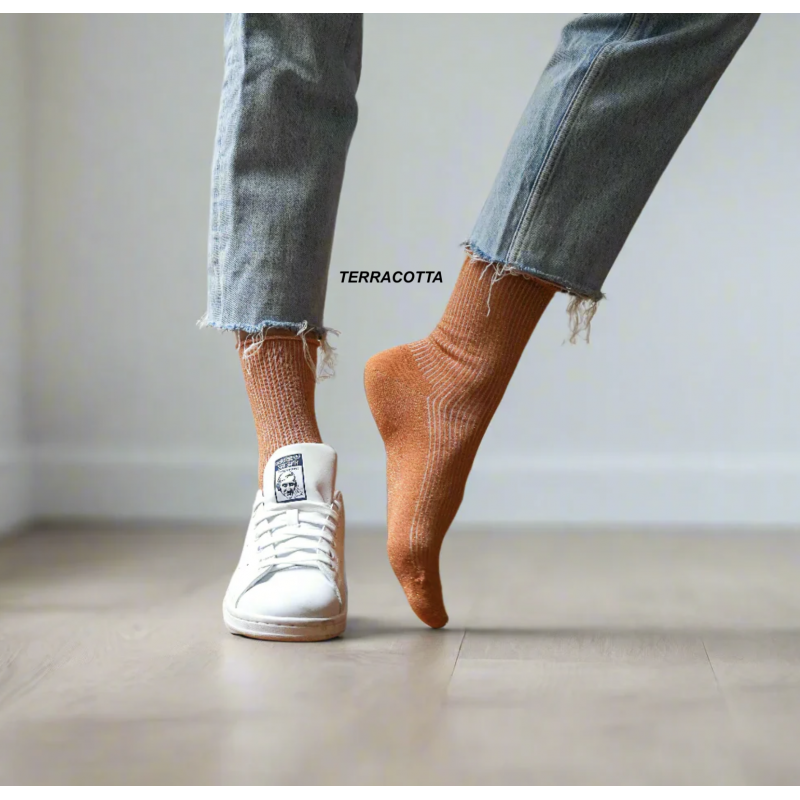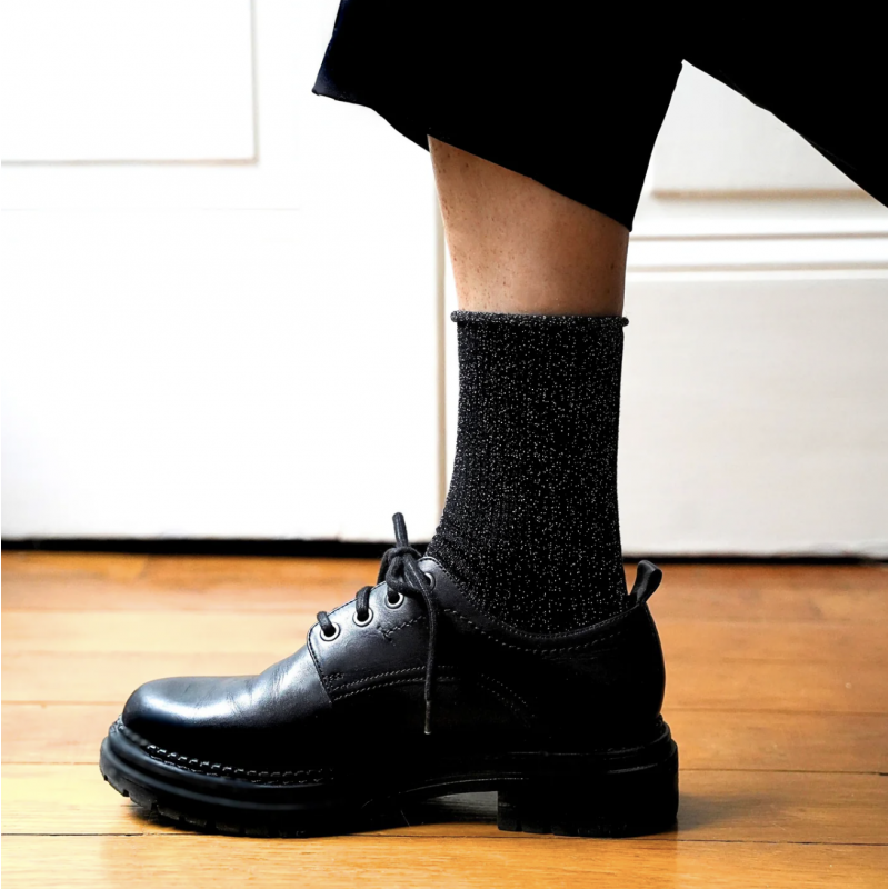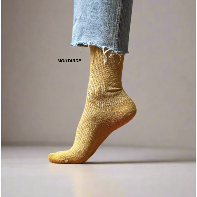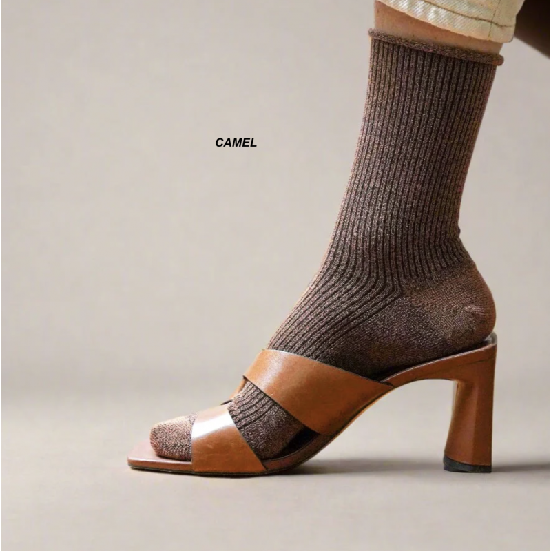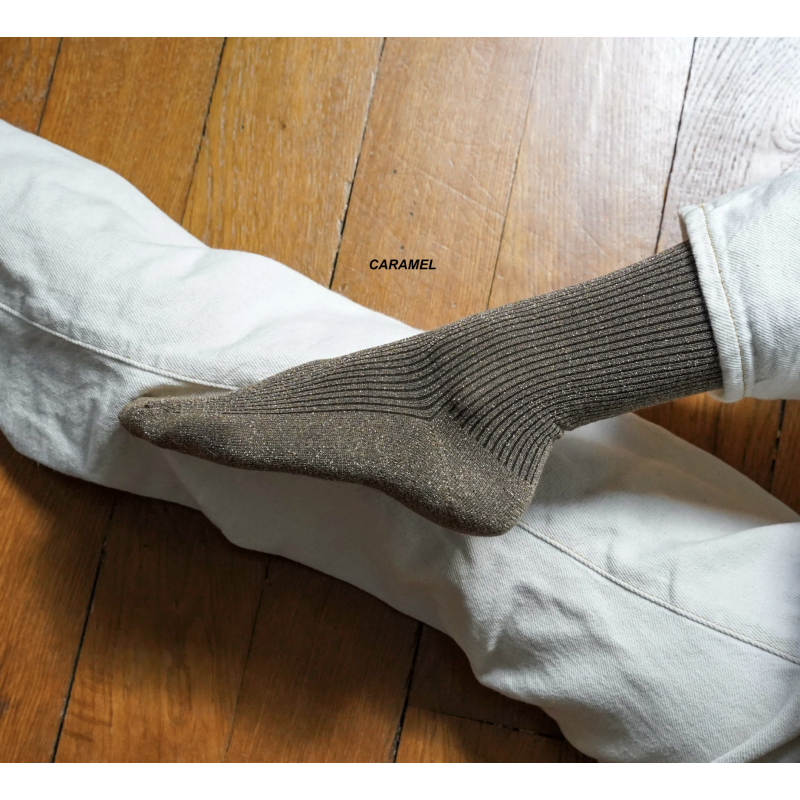 Chaussettes imaginées en France, fabriquées en Italie Les chaussettes transparentes Shibuya Caramel se porteront avec tout : mocassins, derbies ou classiques baskets blanches. Leurs paillettes dorées illumineront vos tenues préférées. Modèle inspiré du grand passage piéton de Shibuya à Tokyo.