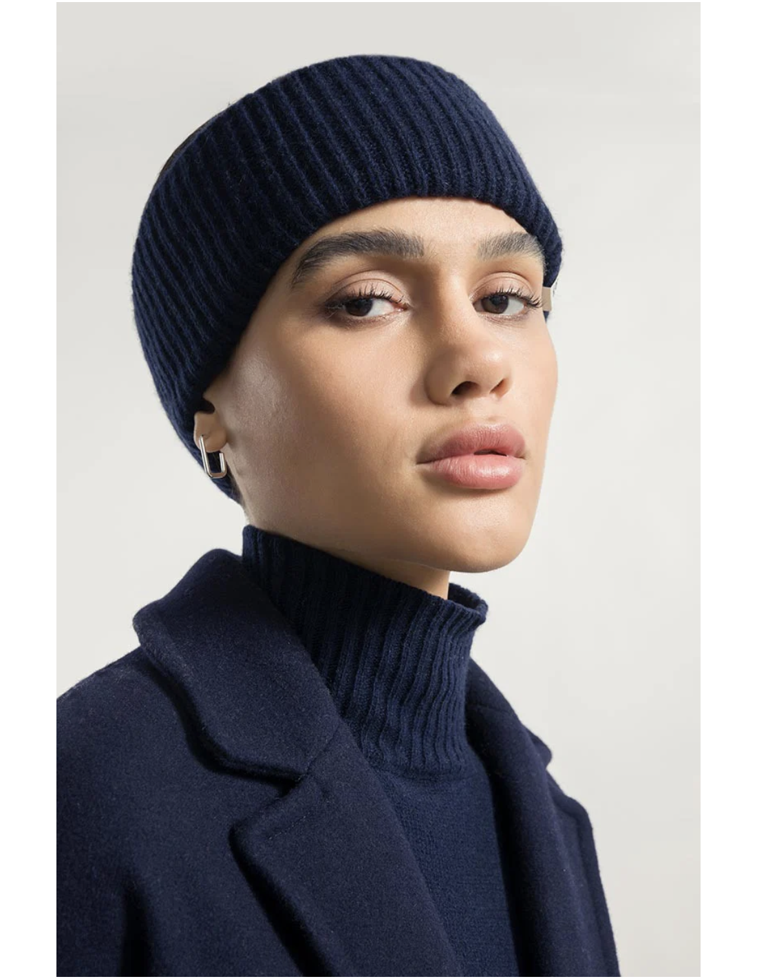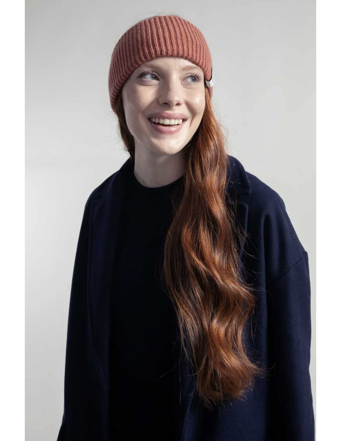 Lara est un bandeau en laine et cachemire recyclés plat et côtelé. Doux et chaud, c'est l'accessoire durable idéal pour l'hiver.