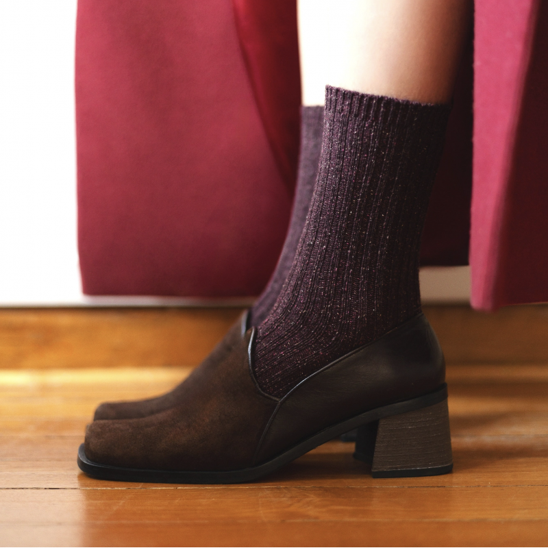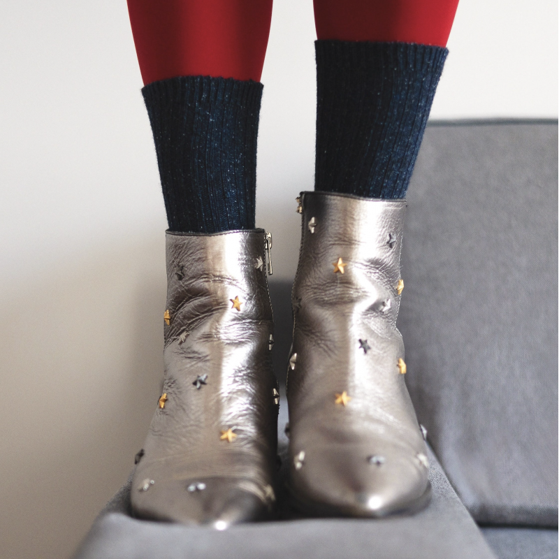 Découvrez la nouvelle gamme de chaussettes colorées en lurex pailleté ! Composition : 75% Bambou Lyocell 15% Polyamide 8% Fibres Métalliques 2% Elasthanne.
