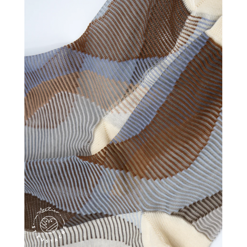 Chaussettes imaginées en France, fabriquées en Italie Un subtil éclat irisé aux douces couleurs qui apportera une touche de glamour à vos tenues. Une paire inspirée des formes géométriques des épines de sapin à porter avec un jean brut.