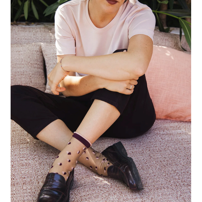 Chaussettes imaginées en France, fabriquées en Italie L'une des trois paires de la collection capsule Octobre Rose. Haute, pailletée, en viscose, et dans une couleur fuchsia intense, ce modèle est une ode à la créativité et laisse une belle part à l'imaginaire. L'asymétrie se dessine avec un coeur plein d'un côté et un coeur ajouré de l'autre, tous les...