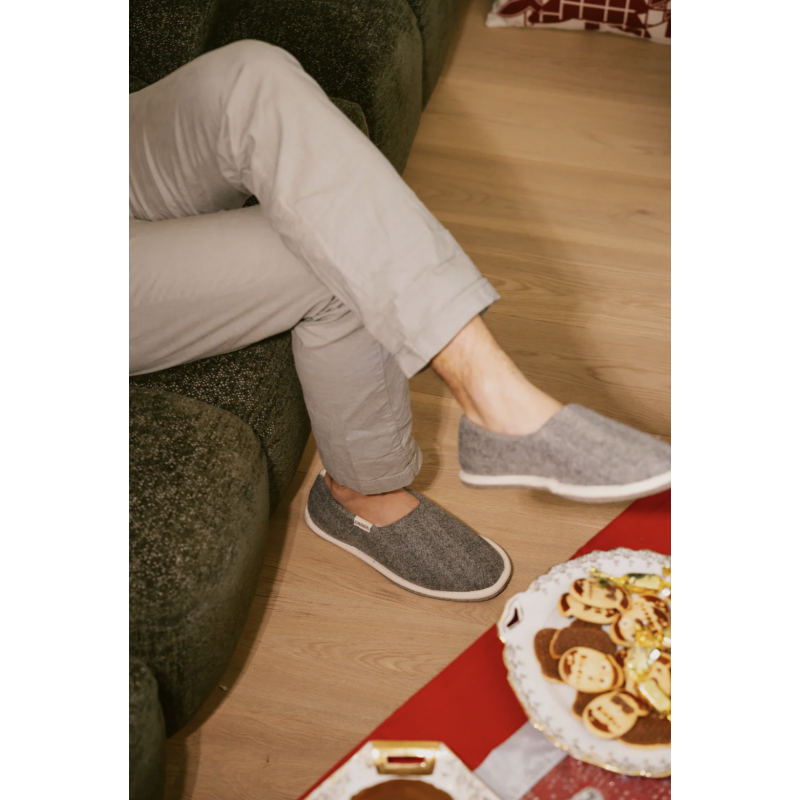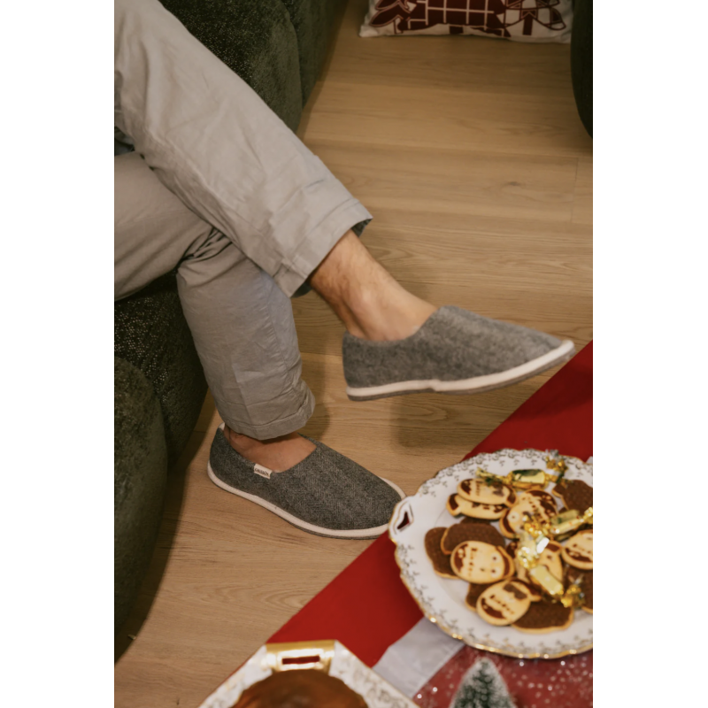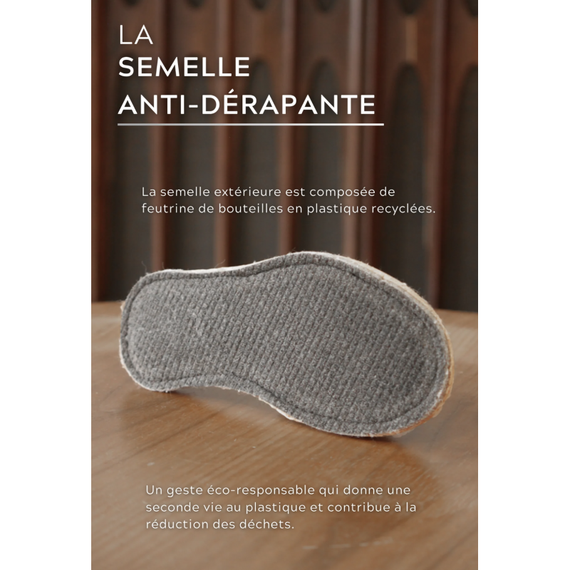 Intérieur : 100% pur laine vierge Extérieur : 90% coton 8% polyamide 2% élasthanne Semelle : 51% Laine 49% Polyester - Antidérapant latex Toutes nos charentaises sont garanties 100% made in France.