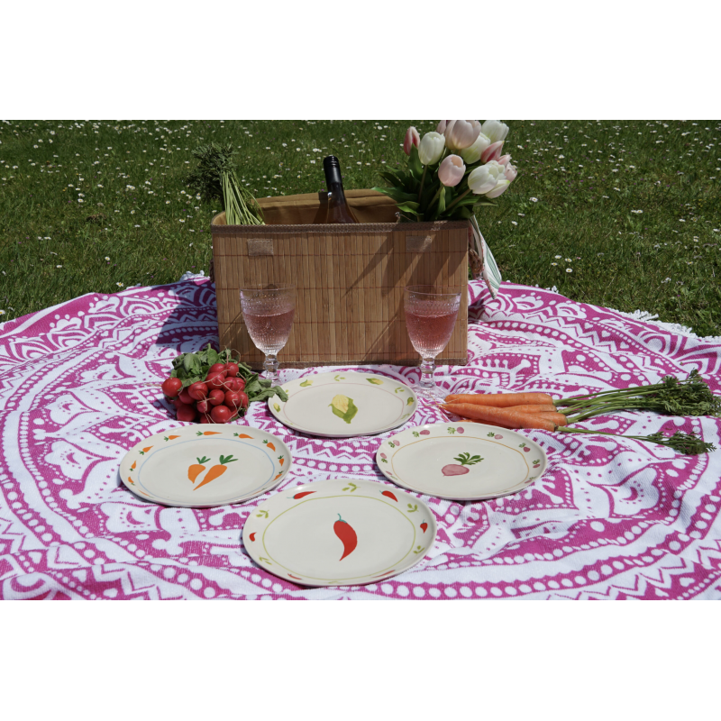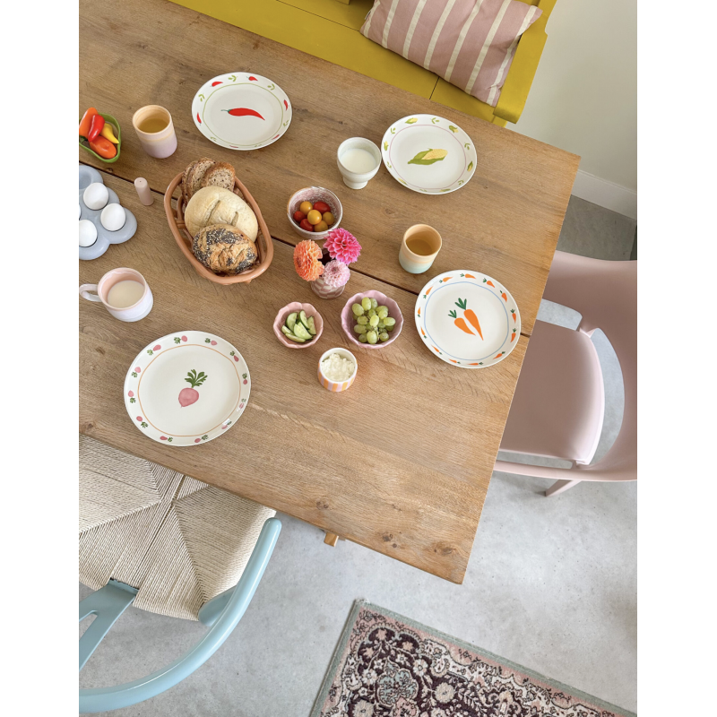 Les assiettes ornées de dessins de légumes sont conçues avec amour aux Pays-Bas et sont fabriquées en céramique résistante. Les assiettes sont vendues par lot de 4 et ont un diamètre de 22 cm. Égayez chaque recoin de votre maison avec ces assiettes à motifs de légumes.