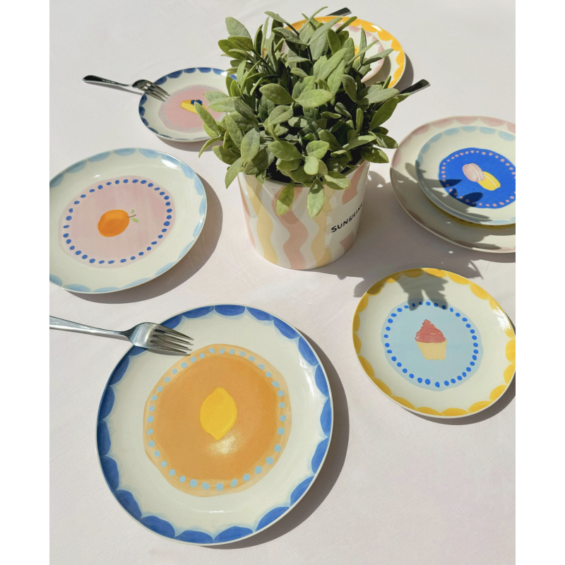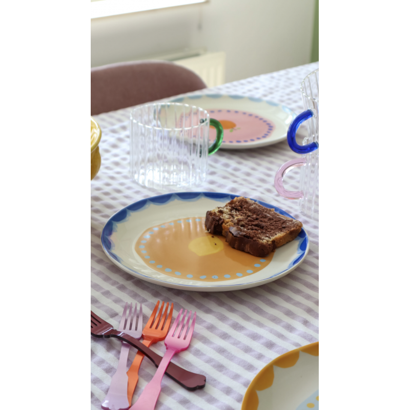 Ces assiettes Fruit Fiesta ont été conçues avec amour aux Pays-Bas et sont fabriquées en céramique résistante. Elles sont vendues par lot de 4 et ont un diamètre de 22 cm.