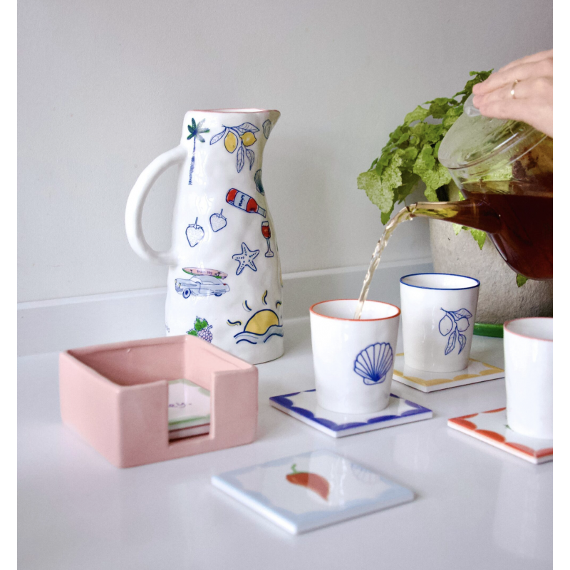 Ce set de sous-verres colorés de And Nook transforme chaque moment passé à déguster un café, un verre de vin ou un jus de fruits en une expérience joyeuse à table.