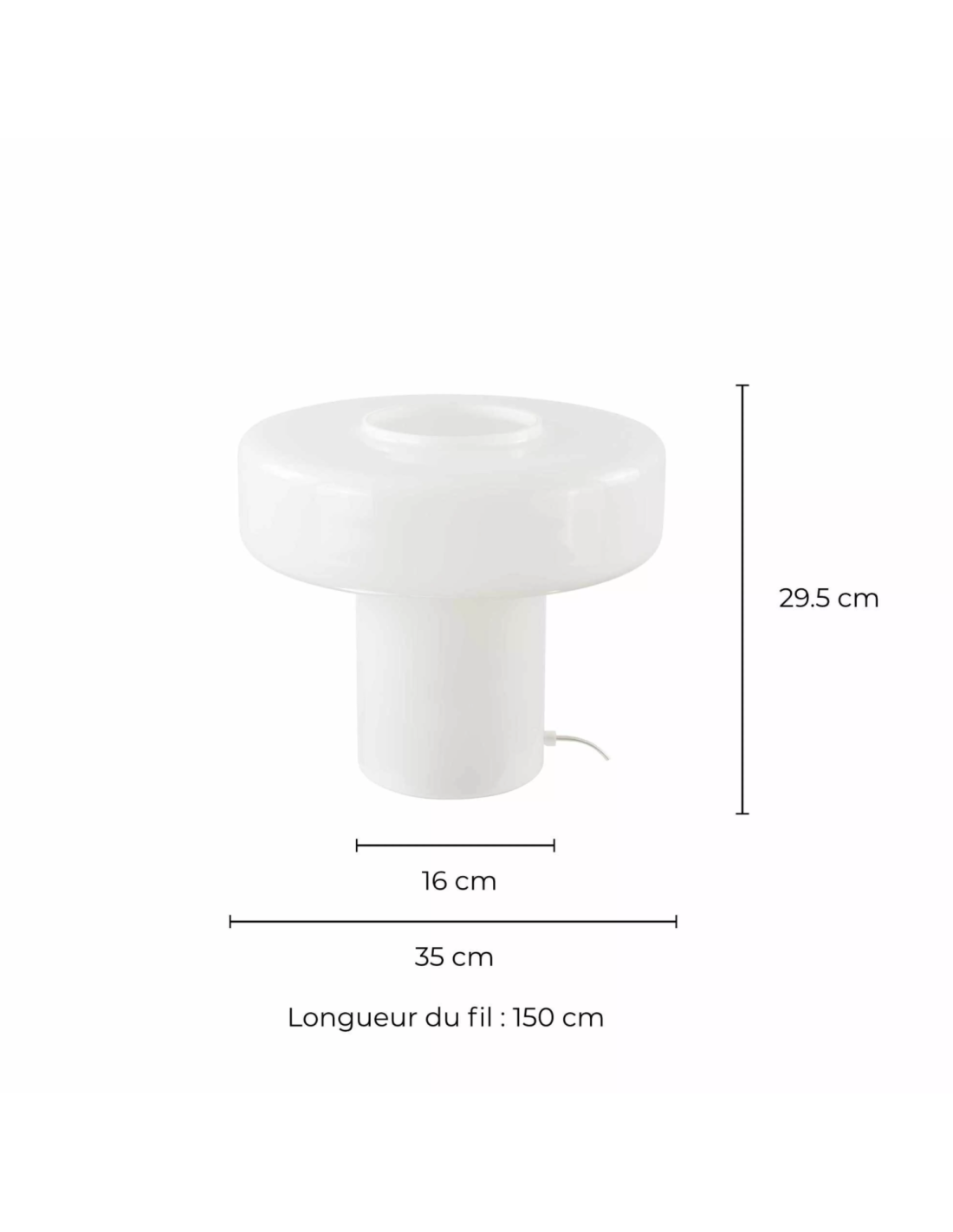 Avec son diamètre de 35 cm et sa hauteur de 29,5 cm et grâce à son cordon de 160 cm, la lampe à poser Foza trouvera sa place sur un buffet de salon, ou sur une table de chevet.