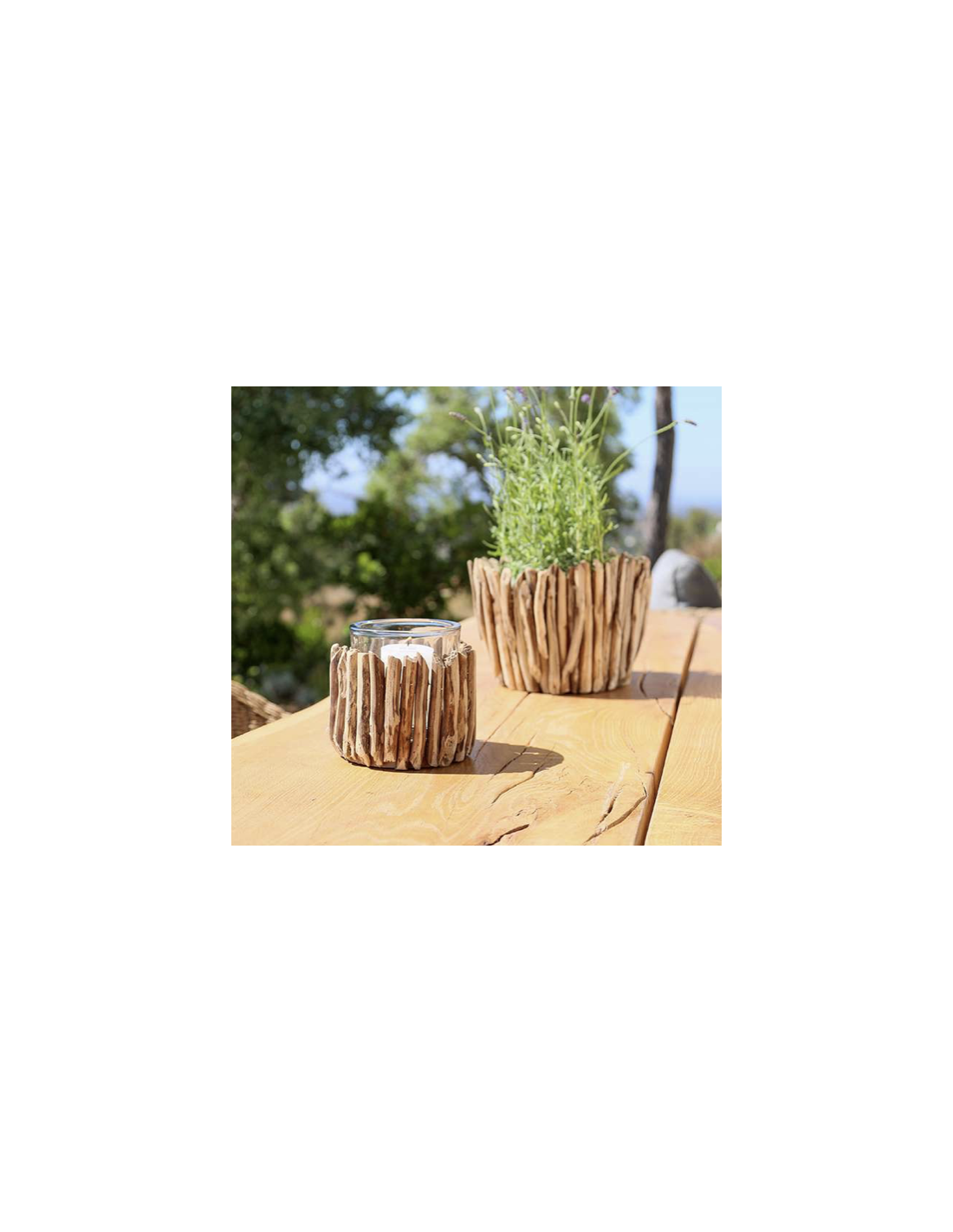 Apportez une ambiance chaleureuse et naturelle à votre intérieur avec ce photophore en teck flotté. Son aspect brut et authentique, inspiré du bois flotté, crée une lumière douce et apaisante, idéale pour sublimer vos soirées.