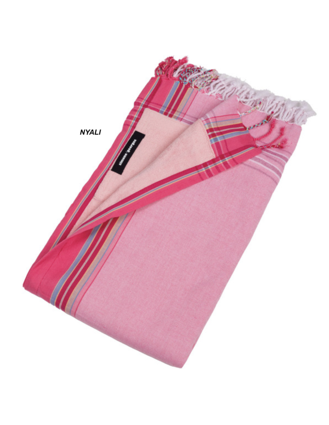 Cet accessoire deux en un est fabriqué avec du coton peigné pour allier douceur et résistance. D'un côté une très fine serviette-éponge, de l'autre un paréo swahili coloré. Léger et jamais ensablé, vous pouvez le laver à la machine à 30°, les couleurs resteront intactes grâce aux teintures Grand Teint, même au soleil !