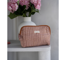 Trousse de maquillage : 20x10x8cm - Trousse de toilette : 28x17x8cm - 100% coton matelassé - Doublure étanche plastifiée - 2 poches intérieures - Fermeture éclaire ornée d'un noeud imprimé