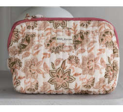 - Trousse de maquillage : 21x11x10cm - Trousse de toilette : 28x17x10cm (intérieur plastifié, 2 poches intérieures, poignée latérale) - 100% coton matelassé - Ouverture large - 2 poches intérieures - Fermeture éclaire ornée d'un noeud imprimé - Trousses vendues individuellement