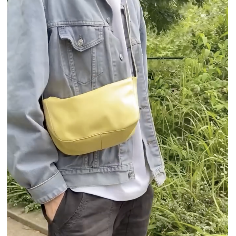 C’est une pièce polyvalente, avec une forme minimale qui cache une ou plusieurs sangles, permettant de la porter à la main, sur l’épaule, ou portée comme un sac à dos.