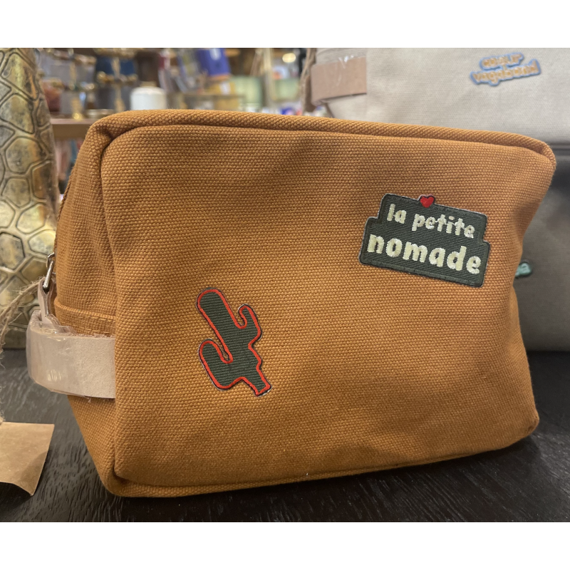 Dimensions : 16x10cm Trousse de toilette en toile de coton lavé avec fermeture éclair et doublure en nylon noir.