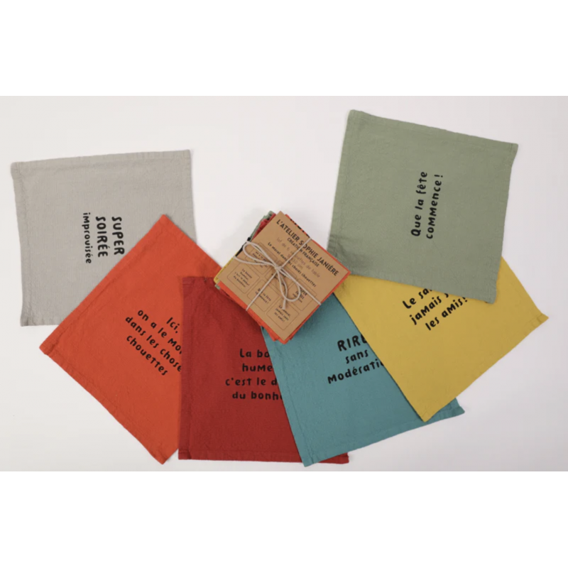 Égayer votre table avec ces 6 serviettes en coton lavé colorés.