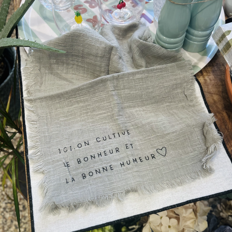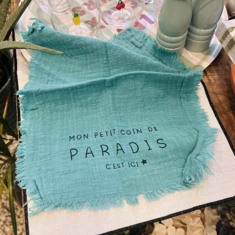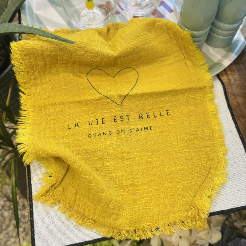 Essuie main en gaze de coton, doux et absorbant, il se décline en plusieurs couleurs.